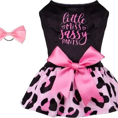CuteBone Little Miss Sassy Pants Dog Leopard Print Dress Velvet for Small Dogs Girl Puppy Dresses Pink Dog Clothes CVA15XXS-D